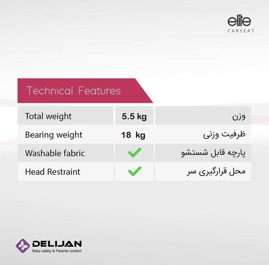صندلی ماشین کودک دلیجان الیت پلاس (رنگبندی متنوع)