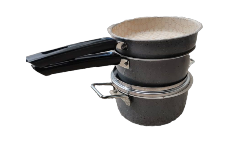 سرویس قابلمه تفلون چیکو این محصول در ۴ تیکه که شامل قابلمه ماهیتابه و شیر گرم کنی میباشد در تنوع رنگ موجود میباشد به همراه درب پیرکس .این قابلمه دارای لعاب تفلون یک لایه میباشد